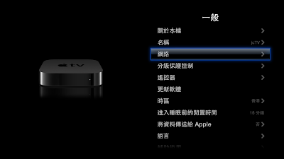 在 WIFI 內可找到相同設定,不知是否 Apple TV 軟件版本不同導致。