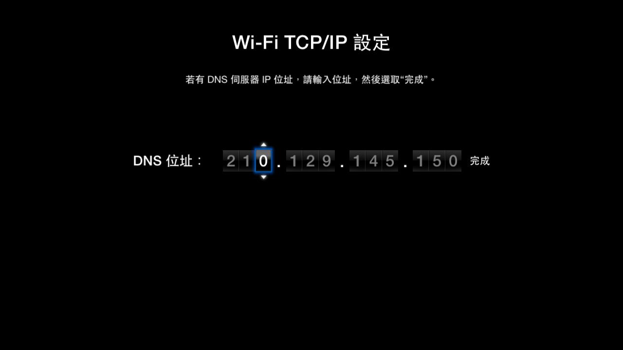 更新:新版本的 Apple TV 系統軟件在設定 DNS 位址上作了一些修改,你可以在選擇「網路」後,直接按已選取的 WiFi 網路名稱後再手動設定 DNS 位址。