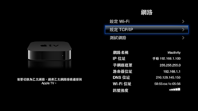 Why I cannot find 設定TCP/IP from my Apple TV? Thanks!